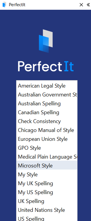 You can also choose a style from the style dropdown in the main PerfectIt pane.