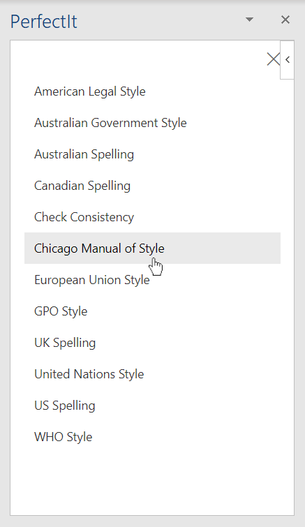 PerfectIt Cloud can run as a consistency checker, or it can be used to check a set of preferences by selecting a style sheet.