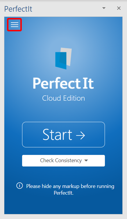 You can select checks for PerfectIt Cloud to include by clicking the Options Menu button.
