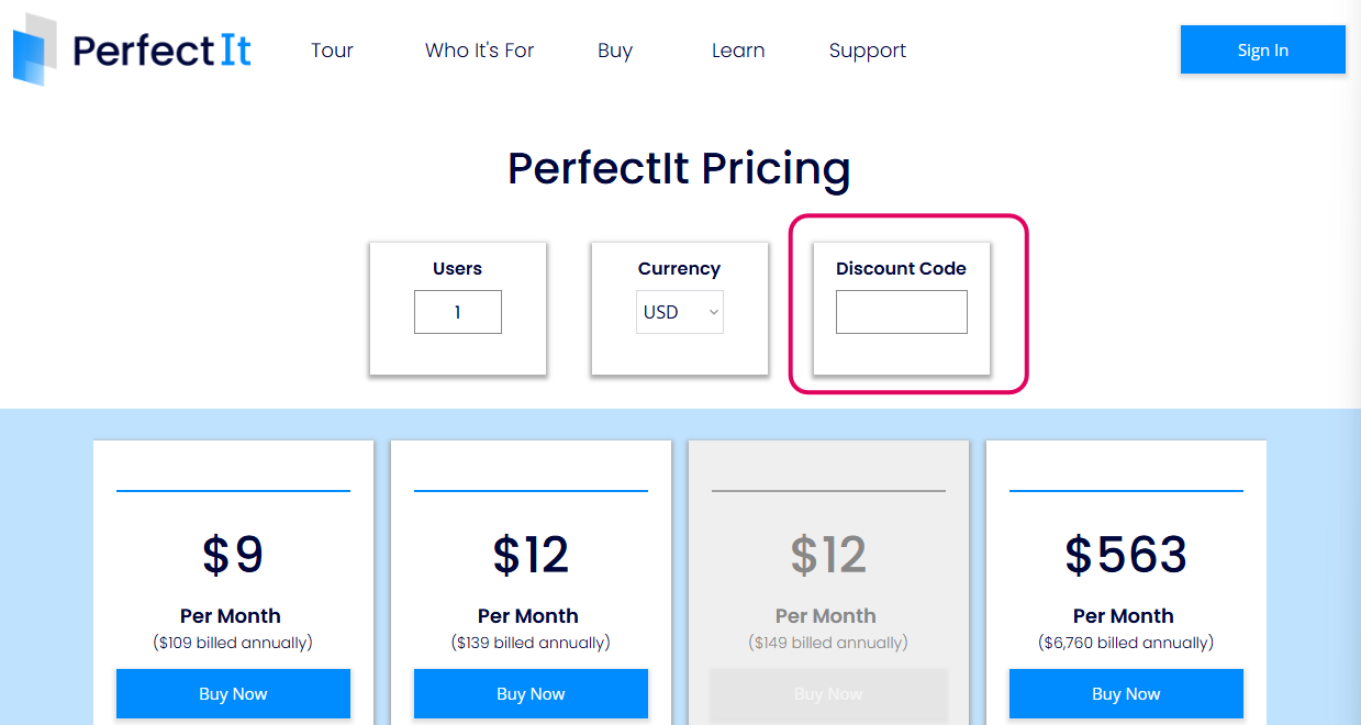 Alternatively, discount and coupon codes can be manually entered on our Buy Now page: