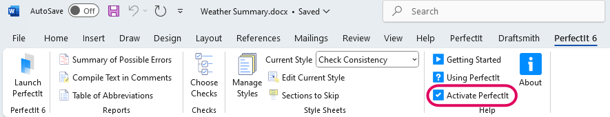 You can register PerfectIt for Word (Windows) by opening MS Word, clicking PerfectIt 6 in the ribbon, then clicking 'Activate PerfectIt'.