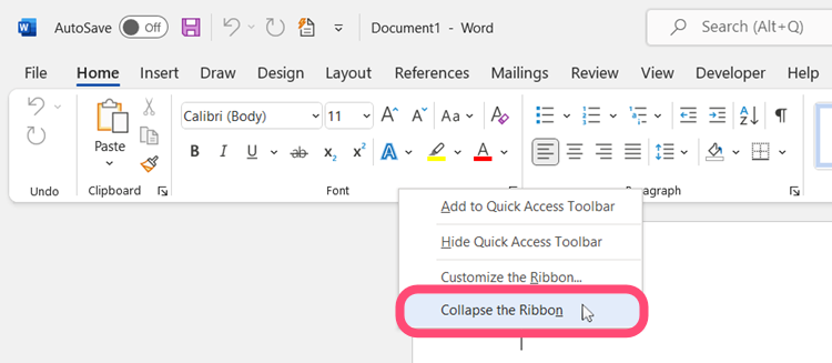 Collapse the Ribbon