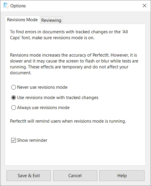 We do not recommend turning this on since you’ll get the best results with PerfectIt if you take the time to review each change.