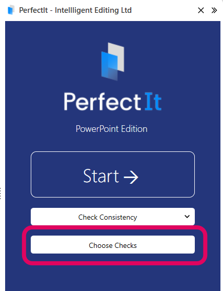 You can run PerfectIt for PowerPoint with all of its checks or you can choose specific checks. Click the Choose Checks button to select which checks PerfectIt should include.