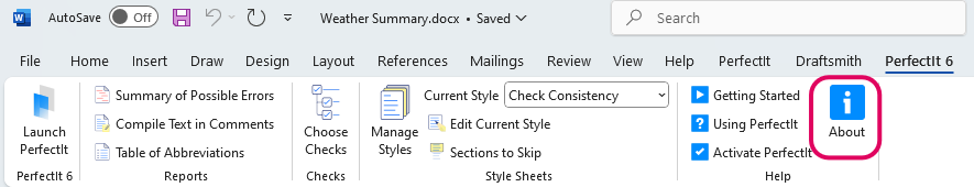 You can find out the exact version number by clicking PerfectIt 6 in MS Word's ribbon.